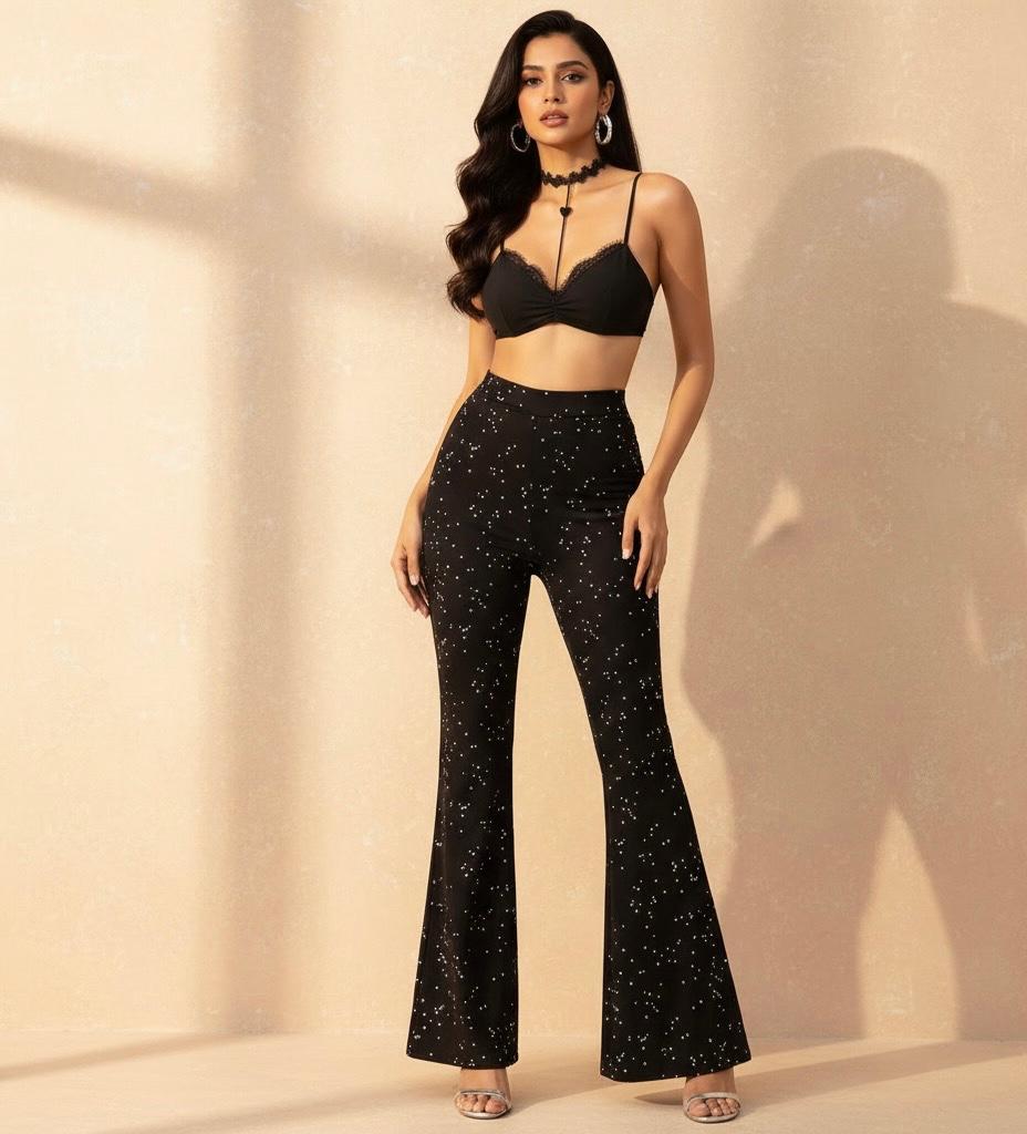 Tina Dutta In Our Fishnet Slit Rhinestone Pants