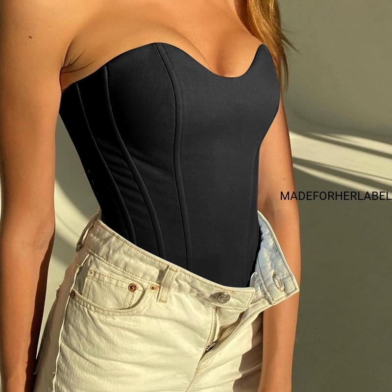• This Britney Corset Top is designed by Made For Her Label, catering to the modern woman's fashion needs. Made with luxurious satin, this tube top is the perfect blend of style and comfort. Elevate your wardrobe with this trendy crop top for women.