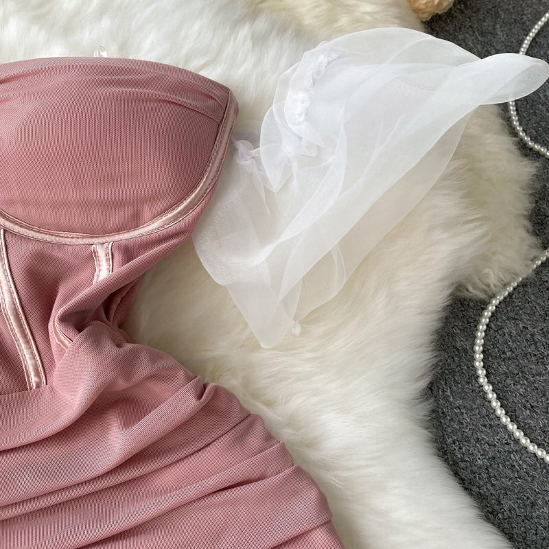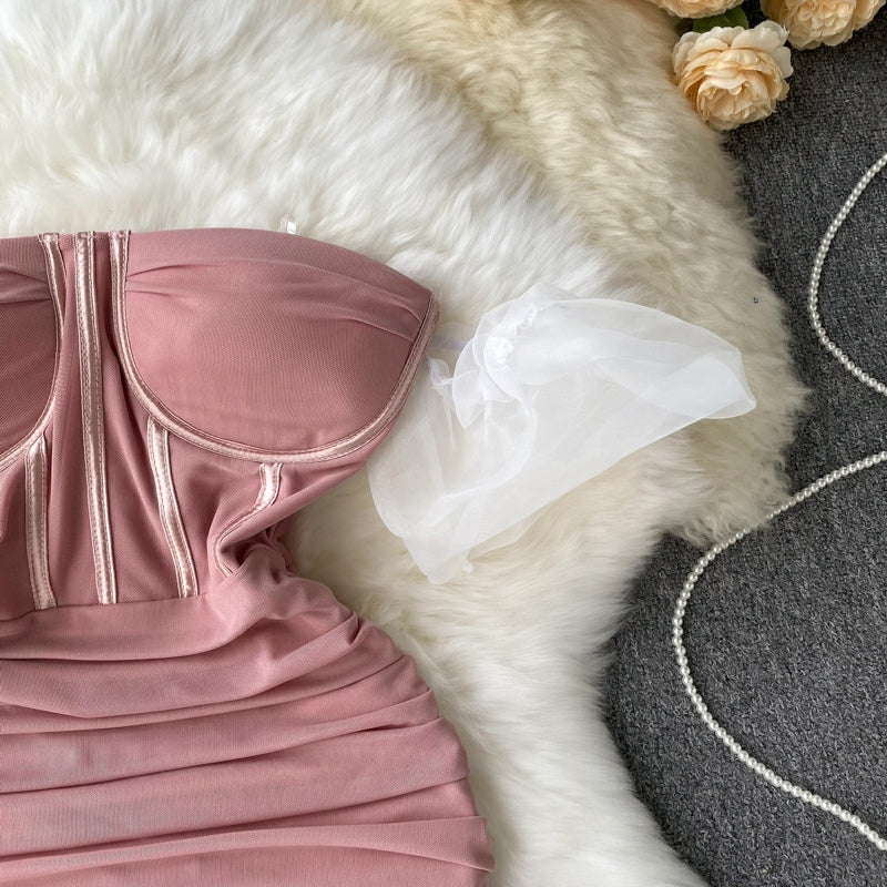 Be the life of the party with the trendy and stylish Bella Corset Dress. Made with lightweight cotton and mesh, this pink bodyfit dress is perfect for summer outings and parties. Comfortable and on-trend, it's the perfect addition to your wardrobe.