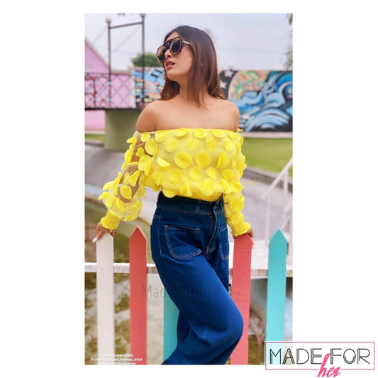 Neha Malik In Our Lantern Sleeve Mesh Ruched Blouse