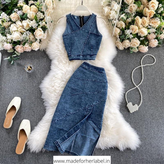 Duo Tone Halter Crop Top And Skirt Set