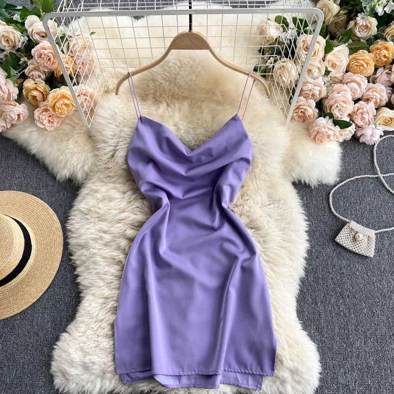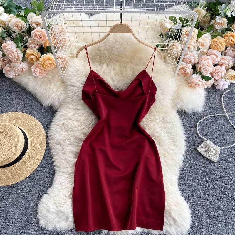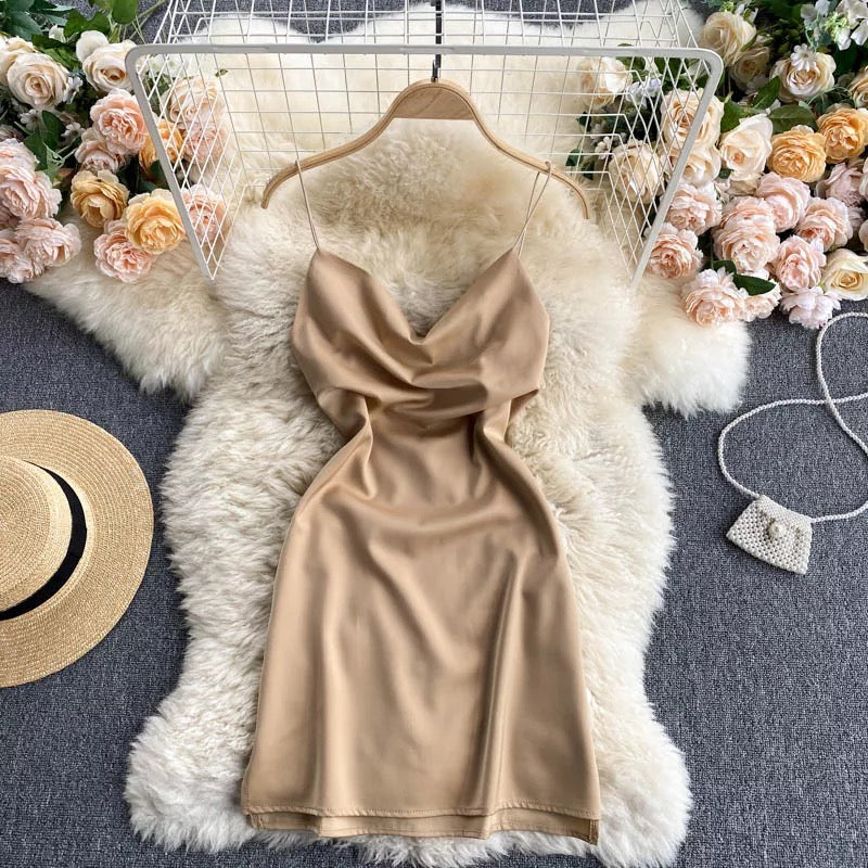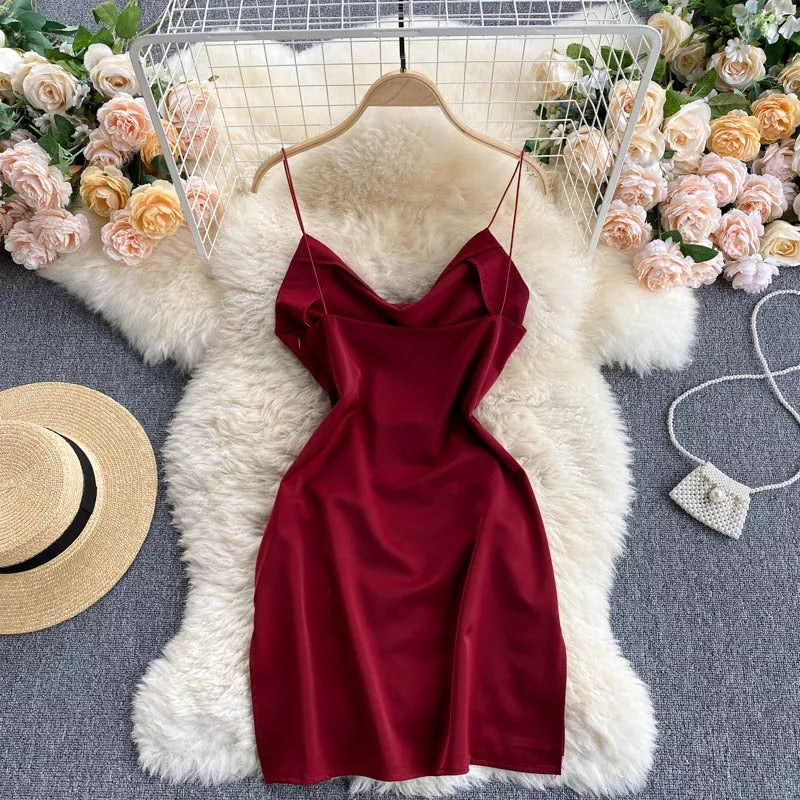 - This Montan Spaghetti Strap Mini Satin Dress is perfect for any special occasion. Featuring a slip design and mini length, this party wear will flatter your figure and allow you to look your best all night long.