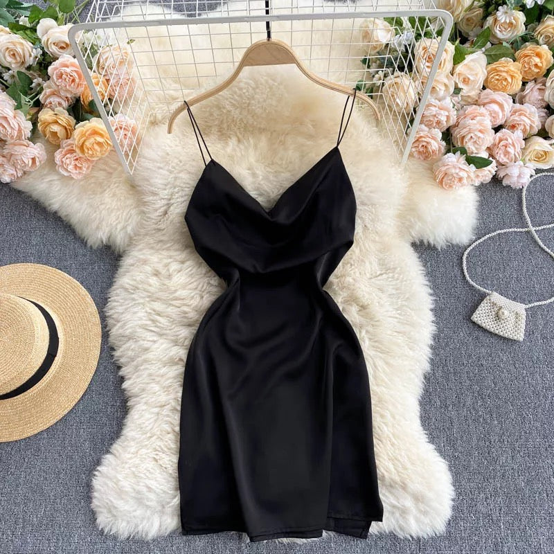 Montan Spaghetti Strap Satin Mini Dress
