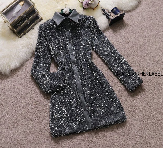 Jissa Paul In Our Collar Buttoned Sequin Dress