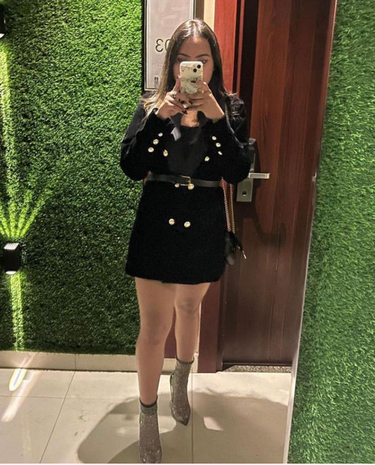 Alisha In Our Norway Velvet Blazer Dress With Belt