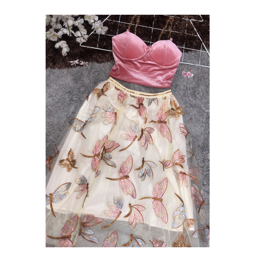 Larissa Velvet Top With Sequin Butterfly Tulle Skirt
