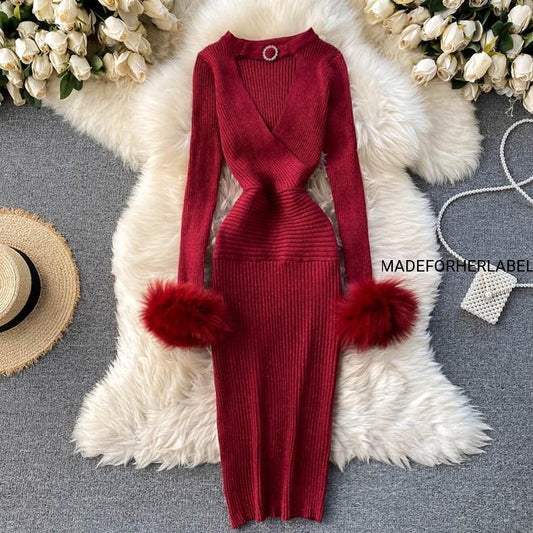 Falaq Naaz In Our V Neck Knitted Bodycon Dress