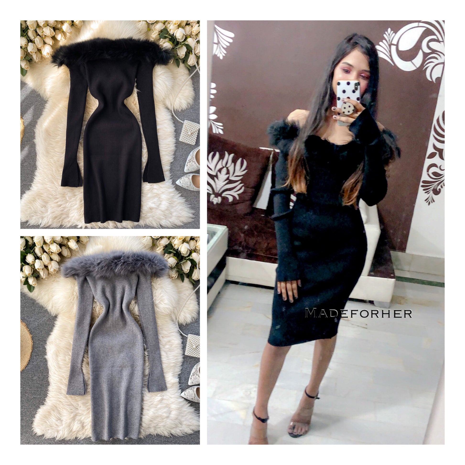 Alisha In Our Off Shoulder Fur Bodycon Dress