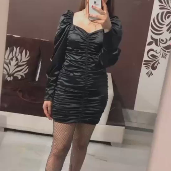 Slip into our Rico Satin Bodycon Dress and experience stylish sophistication. Perfect for special night-outs, this form-flattering mini dress is crafted from ultra-luxe silk satin and features full sleeves for a timeless look. Party on!