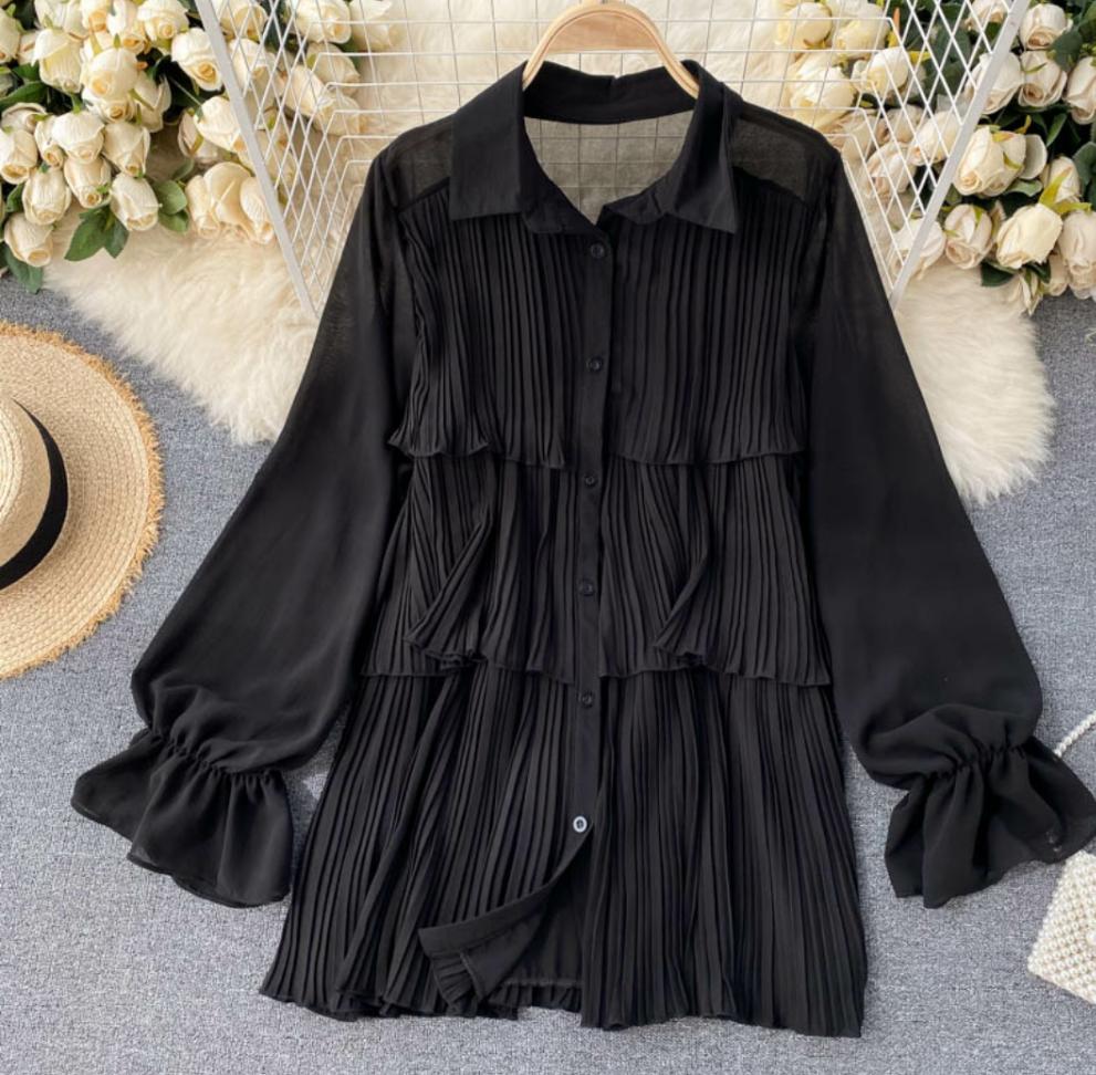 • Look effortlessly stylish in the Amria Pleated dress. This versatile dress works with jeans or shorts, and its oversized design looks great on petite figures. Crafted from a lightweight pleated fabric and designed with full sleeves, this piece is perfect for both casual and formal occasions.