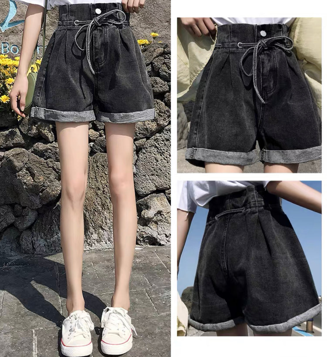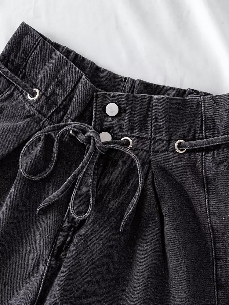 Designed with sophisticated style, these Ana Tie Up Denim Shorts are a must for any woman’s wardrobe. Crafted from high-quality black denim, they feature a classic high-waisted fit with tie-up detailing and are sure to become your favorite shorts.