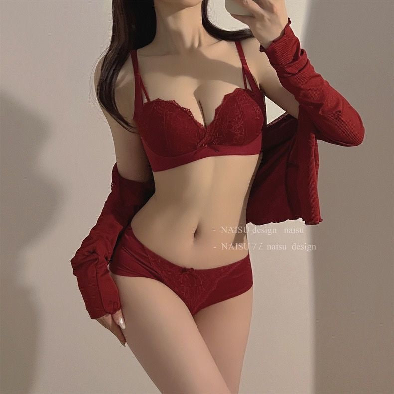 Indulge in a sense of daring with our Azura Lingerie set! This sexy red lace set features padded cups and adjustable straps for the perfect fit. Perfect for your honeymoon or a special night, this lingerie will have you feeling bold and confident.