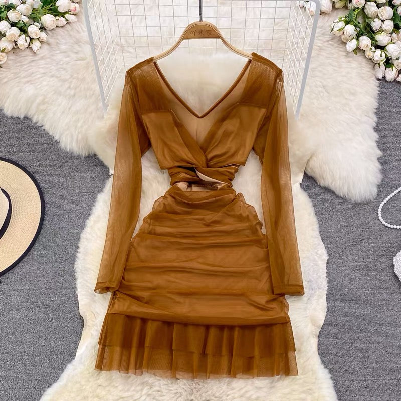 Elevate your style with our Samara V Neck Twisted Waist Cut Bodycon Dress. This chic dress features a flattering V neck design and a waist cut for a sleek silhouette. Made with summer-friendly mesh and polyester, it is both comfy and stretchable for all-day wear. Perfect for any occasion, from outings to parties. Available in black and brown.