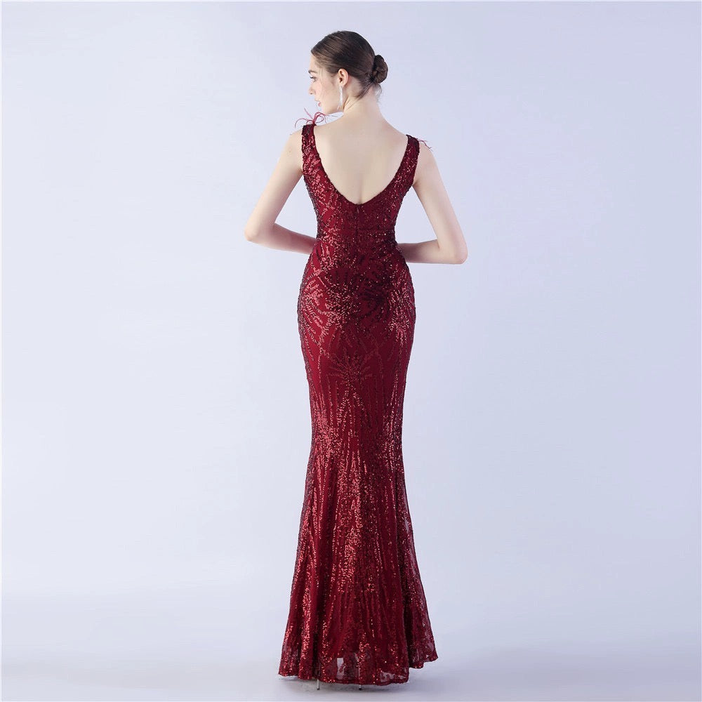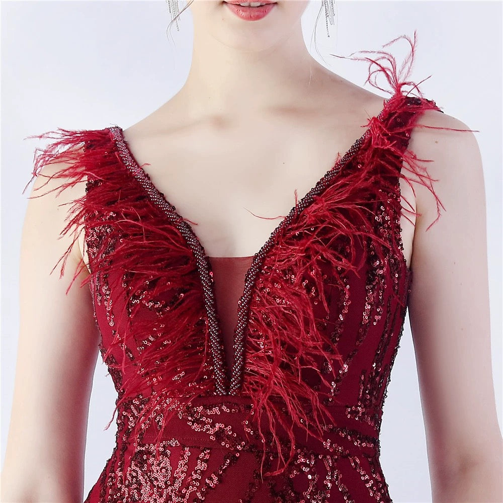 Get ready to stand out in our Jazzy Fur Sequin Dress! This maroon red dress is made with sequin and polyester for a comfortable and luxurious fit. Perfect for parties and birthdays, the long, slit design will make you the center of attention. And with the added fur detail, you'll be sure to shine bright and glamorous. Be the life of the party in this cocktail dress!