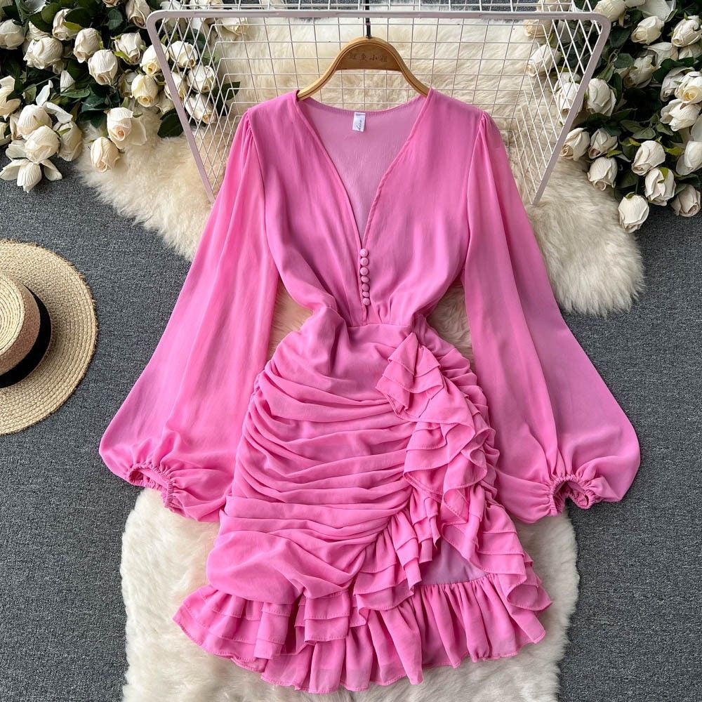 Introducing the Jessica Ruffle Dress, made with a blend of comfortable cotton and polyester. With a playful pink ruffle design, this dress is perfect for parties and brunch dates. Its full sleeves and short length make it the perfect choice for summer days.