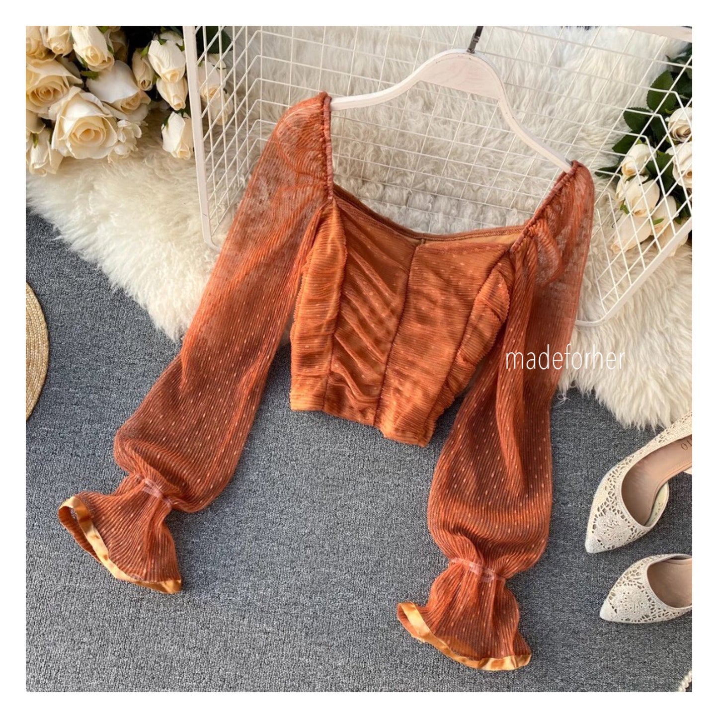 Lucy Square Neck Mesh Sleeve Blouse