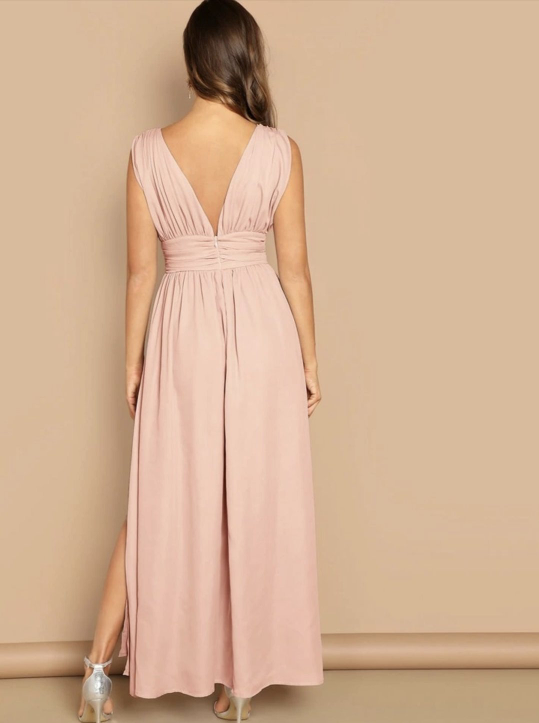 Plunging Neck Wide Waist Split Hem One Piece Dress