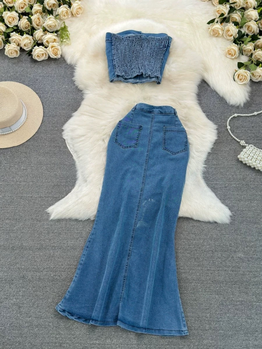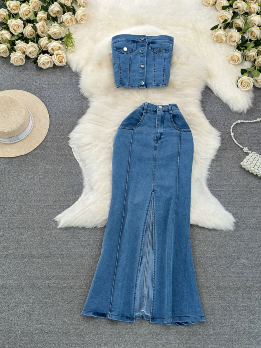 Step out in style with the Regina Denim Set! Made with denim and cotton, this trendy and comfortable three piece coords is perfect for any occasion. Whether you're headed to a party or just running errands, this set is suitable for daily wear. Elevate your wardrobe with this versatile and stylish set.