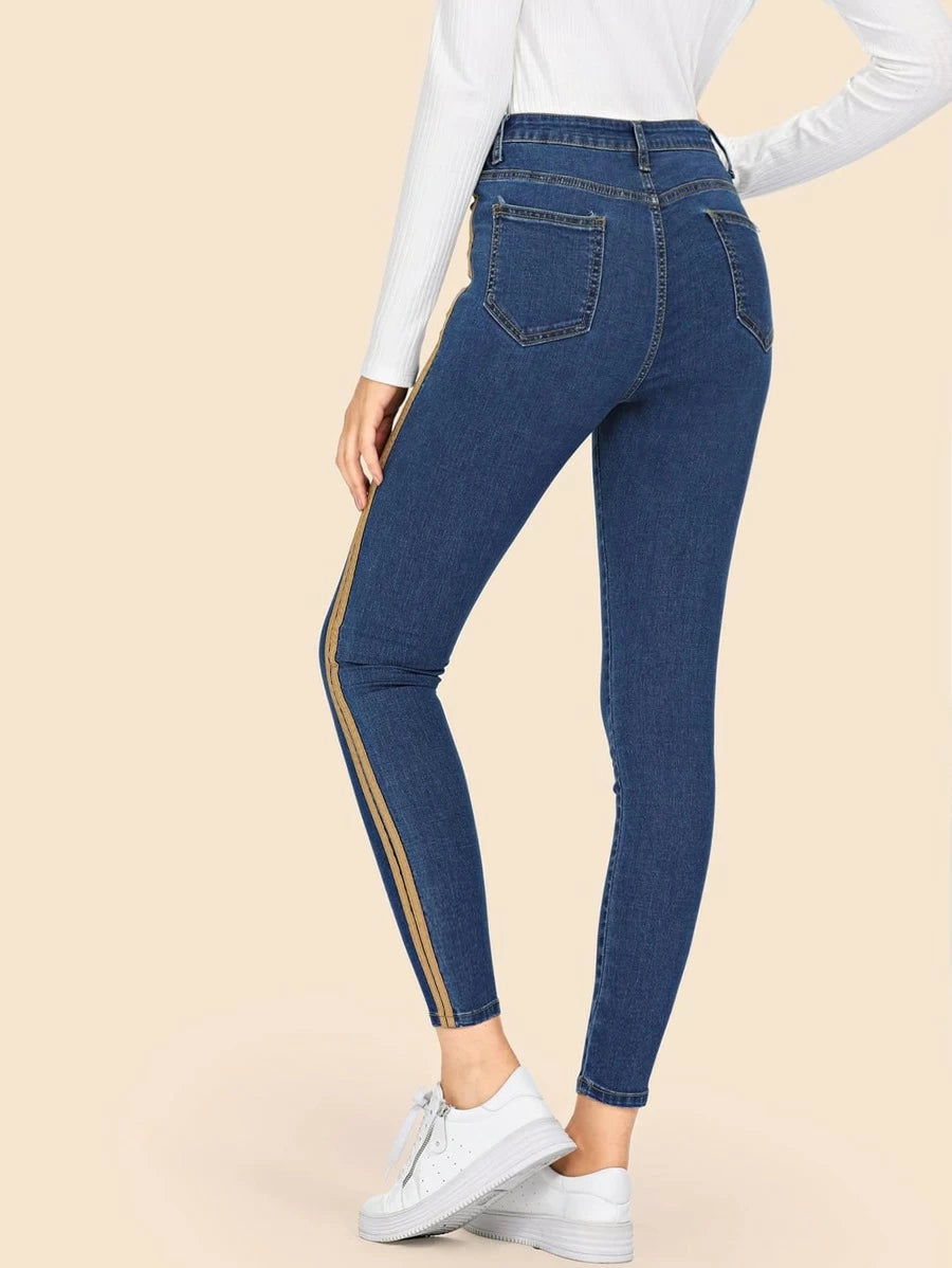 Stripe Contrast Ankle Jeans
